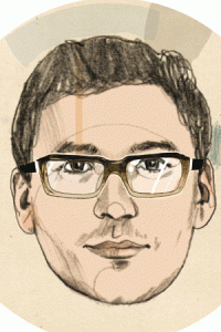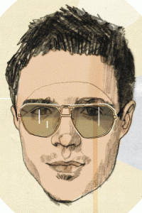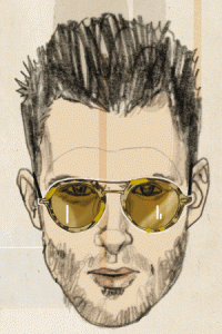 Dieser Mann hat breite Wangenknochen und eine spitze Kinnpartie. Hier passt eine zarte Fassung, deren Rahmen nach unten hin dünner wird.