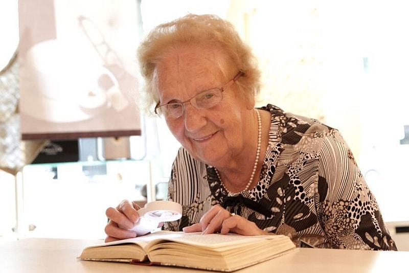 25 Jahre Sehbehinderten-Tag – Lesen mit Lupe (Bild: DBSV / Friese)