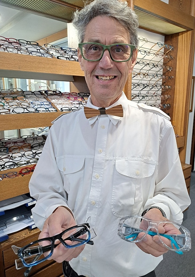 Besondere Weiterbildungen oder Zusatz-Qualifikationen sind laut Danner nicht erforderlich. Die Verglasung übernehmen seine beiden Arbeitsschutz-Brillen-Partnerfirmen Infield Safety (EssilorLuxottica) und Uvex. Danner nutzt auch selbst eine Schutzbrille in seinem Betrieb – als Augenschutz und zur Sicherheit, wenn er in der Werkstatt wieder ein Holzbrillen-Unikat Made in Günzburg anfertigt.