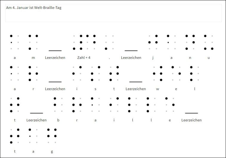 Weltweit gelten nach Angaben der Weltgesundheitsorganisation 253 Millionen Menschen als blind oder sehbehindert. Fast 90 Prozent aller Betroffenen leben in Entwicklungsländern. Die Braille-Schrift eröffnet ihnen bessere Bildungschancen und damit die Grundlage für ein selbstbestimmtes und unabhängiges Leben. Sie ersetzt jeden Buchstaben durch eine Kombination von sechs hervorgehobenen Punkten. Mit dem Finger tastend kann ein blinder Mensch in einem ähnlichen Tempo lesen wie ein sehender Mensch geschriebene Buchstaben.