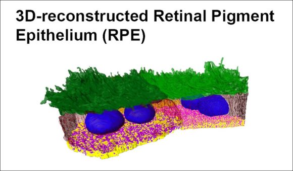 Das retinale Pigmentepithel (RPE) befindet sich zwischen der Neuroretina und der äußeren Blutversorgung im Auge und spielt durch die Betreuung der Photorezeptoren eine entscheidende Rolle beim Sehen. Wissenschaftler verstehen derzeit die Ursachen der Schädigung der RPE-Zellen, die zum Sehverlust führt, noch nicht vollständig. Die in dieser Studie erstellten Rekonstruktionen lieferten ein klares Bild von der 3D-Organisation des RPE in gesunden Augen. Ein entscheidender Bezugspunkt für die Wissenschaftler, um zu untersuchen, wie sich die RPE-Zellen mit dem Alter und in kranken Augen verändern.