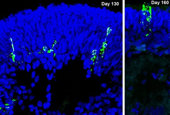 „Zum einen befanden sich viele der N-Protein-angefärbten Zellen in der äußeren Körnerschicht der Organoide,“ so Menuchin-Lasowski. „Der Zelltyp, in dem wir jedoch am häufigsten das N-Protein von SARS-CoV-2 nachweisen konnten, sind retinale Ganglienzellen.“ Interessanterweise hängen viele der mit Covid-19 verbundenen Netzhaut-Symptome mit retinalen Ganglienzellen zusammen, die bisher allerdings vorwiegend mit sekundären Auswirkungen anderer SARS-CoV-2 verursachter Krankheitssymptome in Verbindung gebracht wurden, wie Schäden an den Blutgefäßen oder eine Erhöhung des Augendrucks.