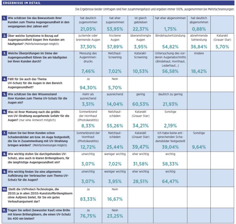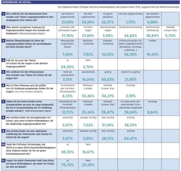 Ergebnisse der Umfrage bei Augenoptikern