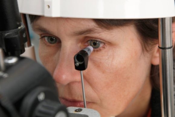 Zur Messung des Augeninnendrucks wird die Kraft gemessen, die nötig ist, um die Hornhaut in einem definierten Bereich abzuflachen. Der Augeninnendruck ist ein wichtiger Risikofaktor für eine Glaukomerkrankung (Foto: BVA)