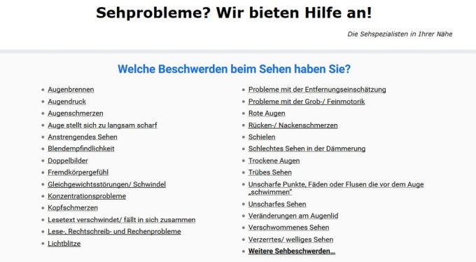 Eine Person googelt ihre Sehauffälligkeit. Über diesen Suchbegriff soll der Kunde auf das Portal geleitet werden. Dort wird dann die Sehauffälligkeit in einfachen Worten beschrieben, um anschließend zu einem wohnortnahen Optometristen weiterzuleiten.