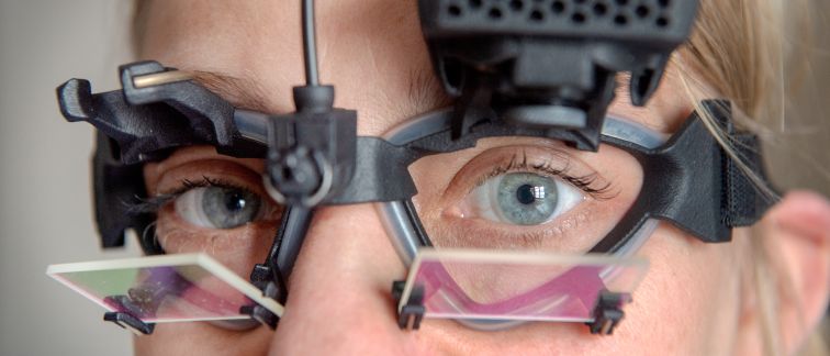 Mit Hilfe einer speziellen Brille werden Augen- und Kopfbewegungen der Versuchsteilnehmer erfasst (Bild: A. Heddergott / TUM)