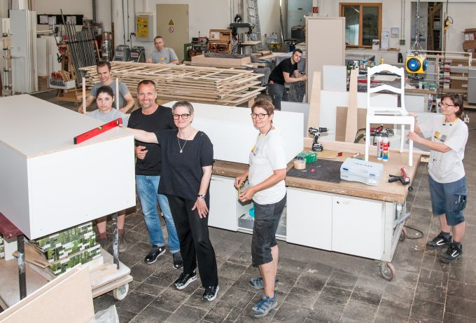 Unser erster Mitarbeiter, den wir 1985 in der Schreinerei eingestellt haben, war eine Frau. Sie hat zuvor in einem Supermarkt gearbeitet. Dort haben wir sie abgeworben. Sie ist inzwischen Meisterin und immer noch bei uns.