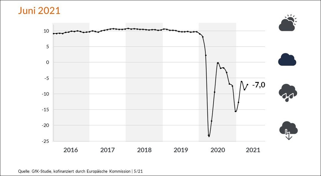 GfK-Konsumexperte Rolf Bürkl meint dazu: „Wir lassen die dritte Welle mehr und mehr hinter uns, die Inzidenzen sinken seit einigen Wochen signifikant. Und auch beim Impfen machen wir große Fortschritte. Als Folge daraus sind Öffnungen und eine Abkehr vom strengen Lockdown möglich. Dies beflügelt momentan in erster Linie den Konjunktur-Optimismus und sorgt für konjunkturelle Aufbruchstimmung.“