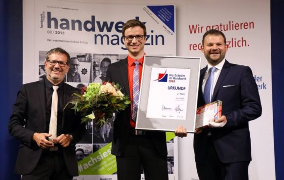 Augenoptiker Arne Engler (Mitte) bei der Preisverleihung der Top-Gründer 2018 (Bild: Handwerksmagazin)