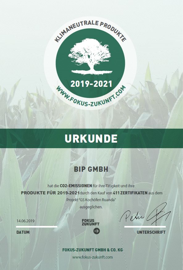 Bis 2021 ist BiP mit Produkten klimaneutral