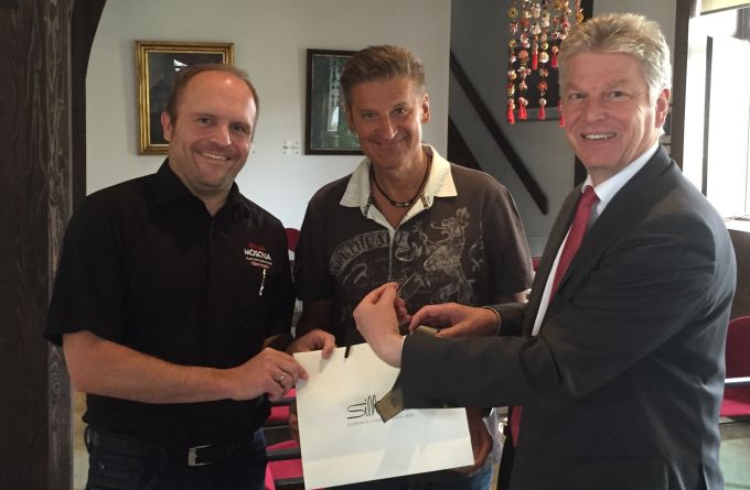 Hartmut Engler überreicht 2017 seine Brillenspende (von links): Markus Stammberger, Harmut Engler und Jürgen Kessing (Foto: Mosqua Presse)