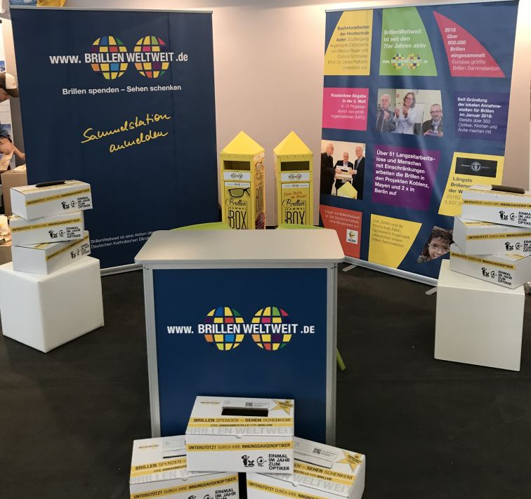 Brillen Weltweit war erstmals auf der opti 2019 vertreten und konnte die Aktion „Brillen spenden – Sehen schenken“ der ganzen Branche direkt vor Ort vorstellen. Die Organisation arbeitet gespendete Brillen mit der Hilfe von Langzeitarbeitslosen auf und gibt sie in der dritten Welt kostenlos an Sehhilfebedürftige ab.
