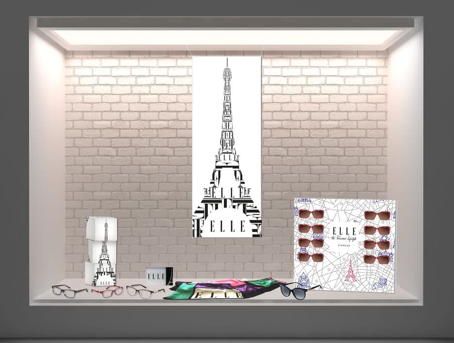 Um an diesem Wettbewerb für die schönste Schaufenster-Deko für die Marke Elle teilnehmen zu können, muss der Optikbetrieb das spezielle Dekopaket gestalterisch umsetzen. Dieses erhält man beim Kauf von 18 Elle-Fassungen.