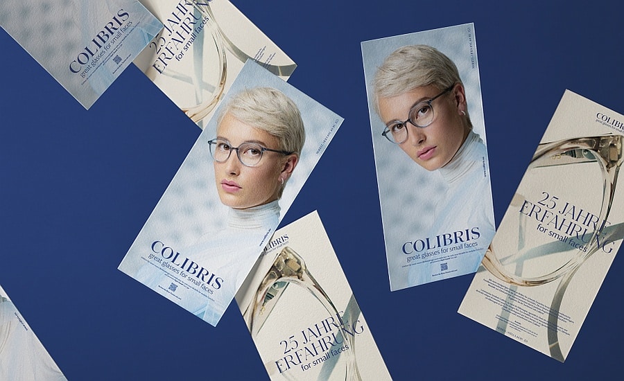 Der etablierte Claim „Great glasses for small faces“ bleibt das Herzstück der Marken-Kommunikation. Ergänzt wird er durch neue Botschaften wie „25 Jahre Erfahrung for small faces“ oder „Designt in Lübeck for small faces“, die die Spezialisierung von Colibris betonen und emotionale Nähe zur Marke schaffen.