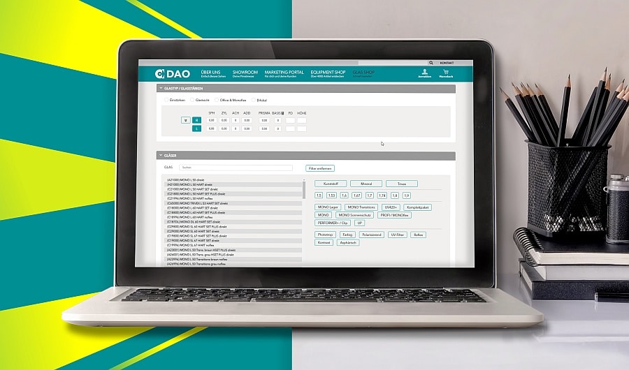 Besonders die neuen Warenkorb-Funktionen des Glas-Shops seien hervorzuheben, so das Unternehmen. Mit diesen können Glasbestellungen im Warenkorb nachträglich bearbeitet und die Glaswerte für einen Zweitauftrag kopiert werden. Zur schnellen Nachbestellung von Brillengläsern sind frühere Bestellungen und Kommissionen im Auftragsarchiv zu finden. Außerdem sind alle DAO-Bestellungen, sowohl Equipment- als auch Glasbestellungen, in einem gemeinsamen Warenkorb aufgelistet.