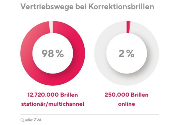 Eine Studie im Auftrag des ZVA kommt zu dem Ergebnis: In Deutschland werden zwei Prozent der Korrektionsbrillen online verkauft.