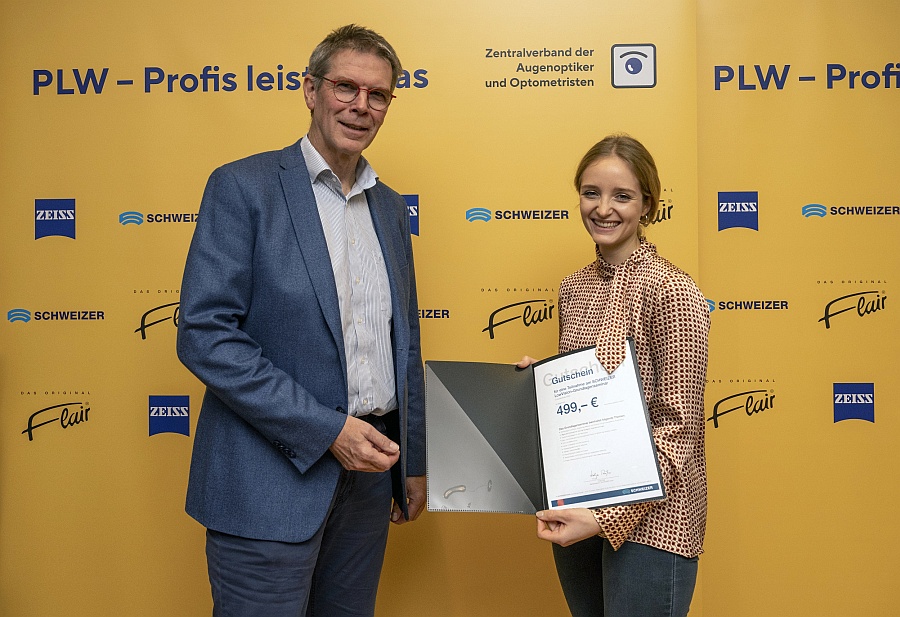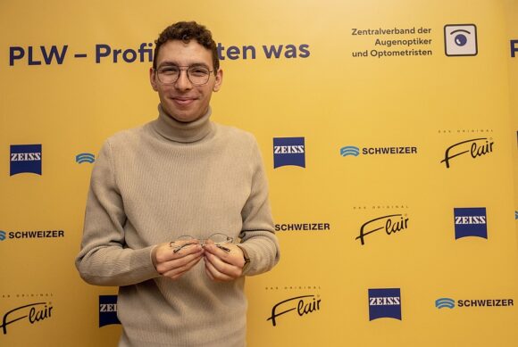 Julian Meining aus Baden-Württemberg absolvierte seine Augenoptik-Ausbildung bei Fielmann in Freiburg und befindet sich derzeit in einem dualen Meisterkurs. Er bekommt für seine sehr gute Beratung bei der Reklamation einer Gleitsichtbrille einen Weiterbildungsgutschein der Firma Carl Zeiss Vision.