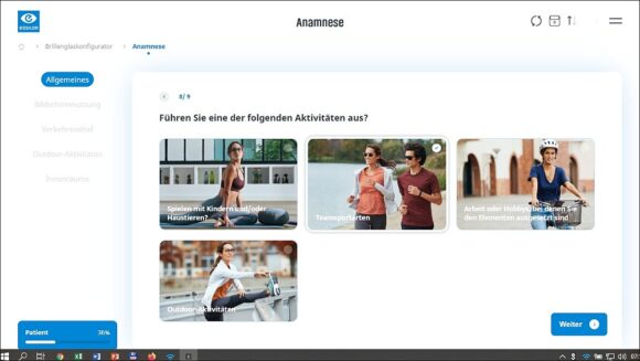 Die Beratung mit der Companion-App startet mit einem interaktiven Fragebogen, der die Anforderungen des Kunden durch eine Reihe von demografischen und Lifestyle-Fragen ermittelt. Eine spezielle Version für Kinder enthält dabei zahlreiche spielerische Elemente. Im Anschluss erstellt die App eine Zusammenfassung des Resultats, die der Augenoptiker mit seinen Testergebnissen manuell ergänzt.