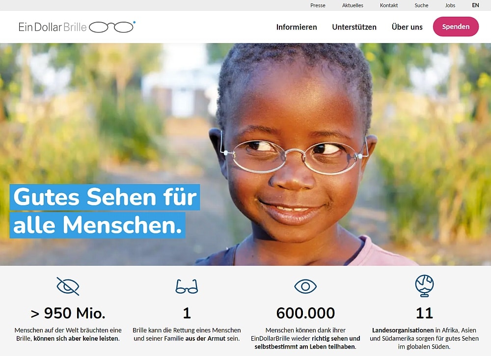 EinDollarBrille hat eine neue Website, mit der sie erstmals einen umfassenden Einblick in die vielfältige Arbeit der Organisation geben kann. Dazu gehören auch Maßnahmen zur Erreichung der Nachhaltigkeits-Ziele der Vereinten Nationen.