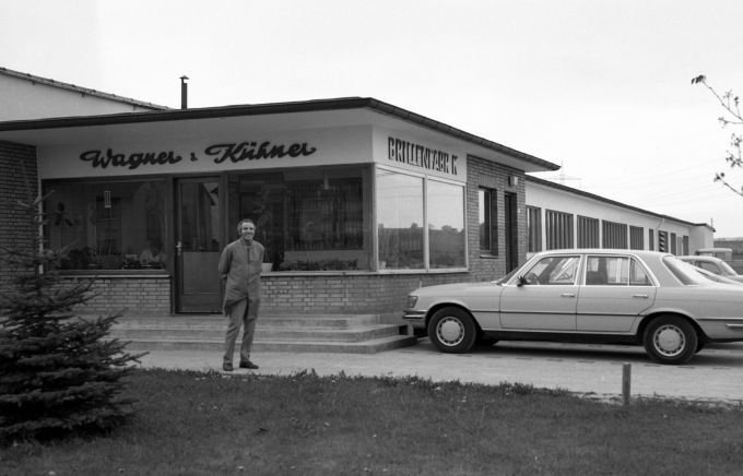 Wagner + Kühner: Emil Kühner vor dem Firmengebäude