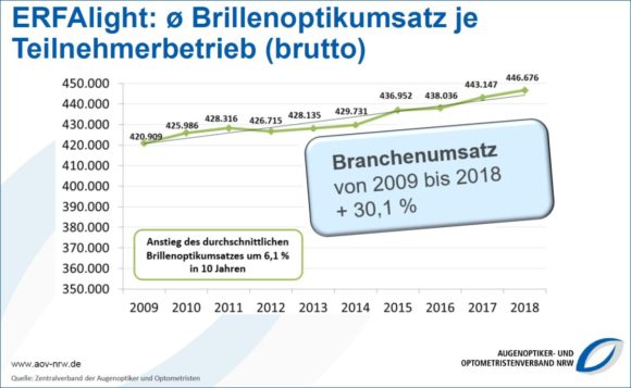 Grafik 2 – Erfa light: Durchschnittlicher Brillenoptikumsatz je Teilnehmer-Betrieb (Quelle: Blick. 2019/ ZVA)