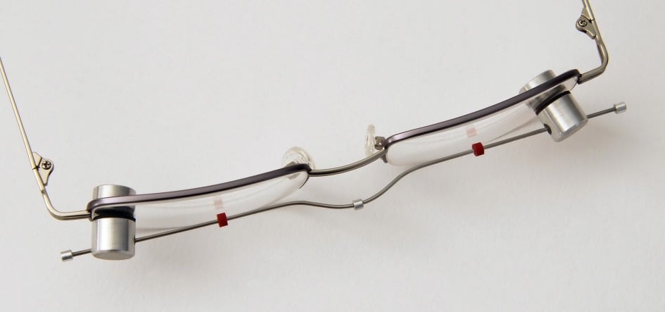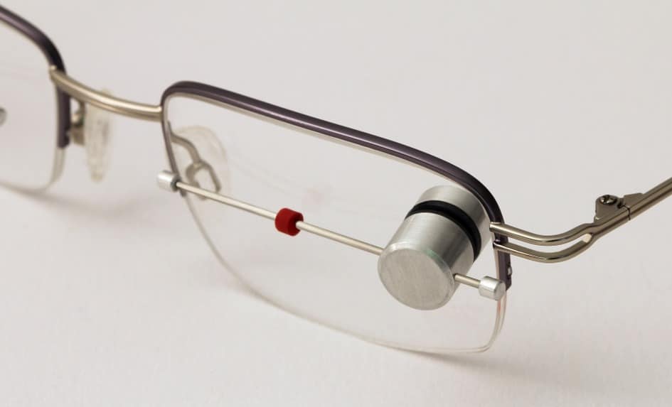 Ulrich Weickardt: Die Grundidee hatte ich relativ schnell im Kopf, einfach einen dünnen Draht zu verwenden, der sozusagen als „Permanentstrich“ dienen könnte. Aber wie das Ganze schnell und einfach an einer Brille befestigen, mit universeller und präziser Verstellfunktion optimalerweise bei aufgesetzter Brille direkt am Kunden? Diese Aufgabe zu lösen war schon etwas kniffeliger, und ich stellte wieder einmal fest, dass der Teufel im Detail steckt. Nach vielen Versuchen und zahlreichen Prototypen war die Lösung schließlich eine multifunktionale Halterung mit integrierten ultrastarken Kleinmagneten.