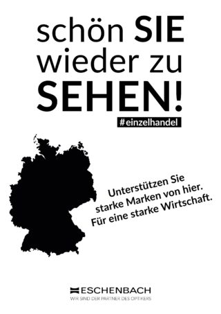 Als lokaler Partner auf Augenhöhe will Eschenbach Optik die Augenoptiker mit nützlichen Tipps und positiven „Comeback“-Botschaften an die Endkunden in Form von plakativen Werbemitteln unterstützen. Diese sind u.a. in Printversion als doppelseitiges Poster angelegt und in zwei Ausführungen erhältlich: „Für uns, für alle“ und „Schön, Sie wieder zu sehen“.