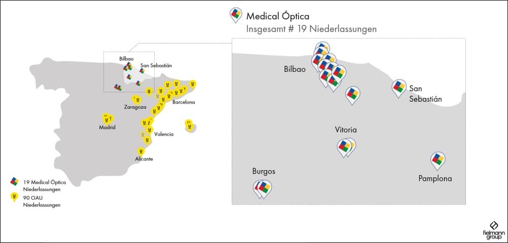 Niederlassungen der Fielmann-Gruppe in Spanien (Quelle: Fielmann-Gruppe)