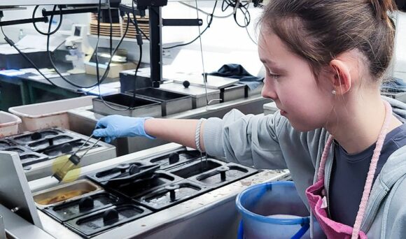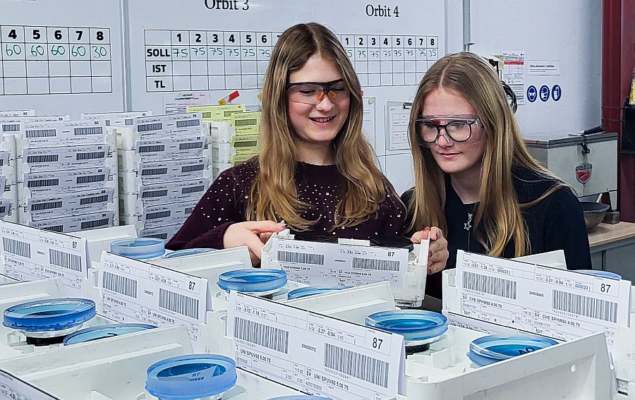 Im Anschluss daran durften die Teilnehmerinnen selbst aktiv werden: Unter fachkundiger Anleitung konnten sie in einem Bereich der Fertigung mitarbeiten und so hautnah erleben, welche Fertigkeiten und Kenntnisse in diesem Beruf erforderlich sind.