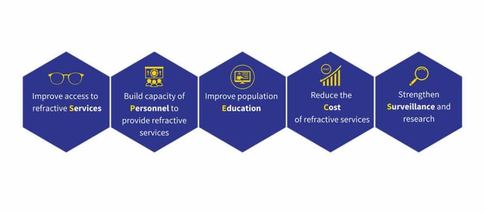 Die WHO-Initiative SPECS 2030 beschleunige die globalen Bemühungen um die Augengesundheit, indem sie sich auf fünf zentrale Säulen konzentriert: Dienstleistungen, um den Zugang zu refraktiven Dienstleistungen zu verbessern; Personal, um die Kapazitäten der Augenärzte auszubauen; Bildung, um das öffentliche Bewusstsein für Augengesundheit zu fördern; Kosten, um die Kosten für Brillen und Dienstleistungen zu senken; und Überwachung, um die Datenerhebung und Forschung zu stärken.