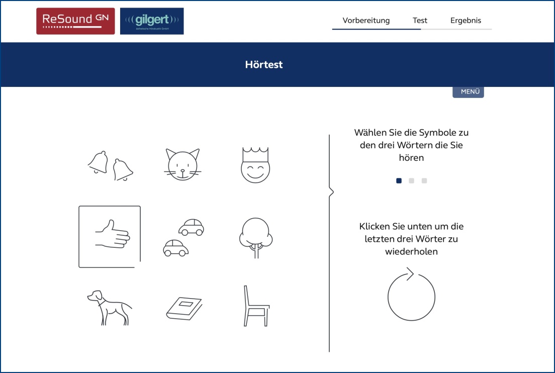 Erste Orientierung, ob die Hörleistung nachlässt, kann ein Online-Hörtest geben, den man am Mobilgerät oder am Computer vornehmen kann, und der gegebenenfalls gleich den Kontakt zum lokalen Hörakustik-Fachgeschäft herstellt. Genau solch einen Test bietet die GN Hearing als interaktives Tool von ReSound zur Einbindung in Hörakustiker-Websites.