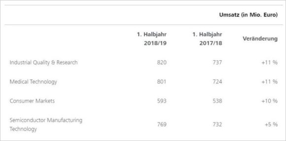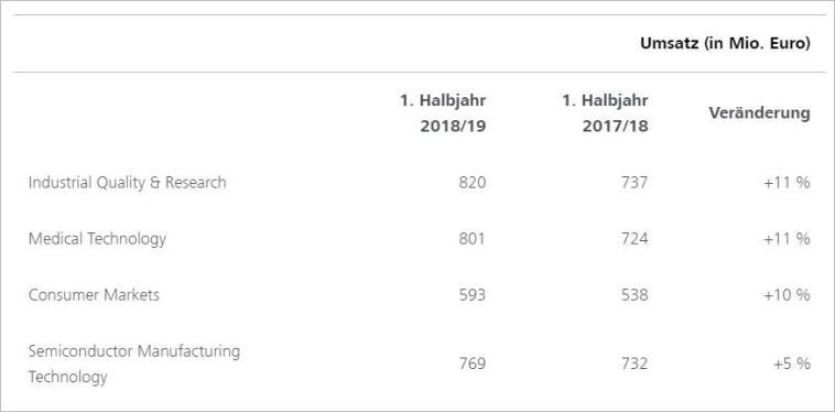 Zeiss Gruppe: die einzelnen Sparten in der Halbjahresbilanz zum 31. März 2019