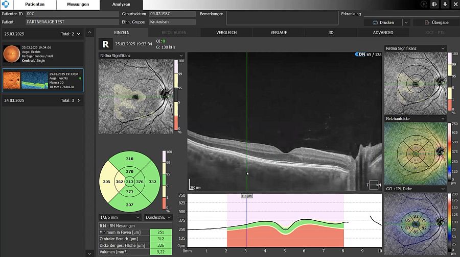 OCT-Scans sind wohl der Goldstandard in der Augenheilkunde. Die KI von RetinaLyze anlysiert auch OCT-Aufnahmen. (Bild: partnerauge)
