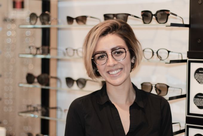 Klaus Best, Augenoptikermeister und Inhaber von Best Optik, steht hinter Parastu Akifi