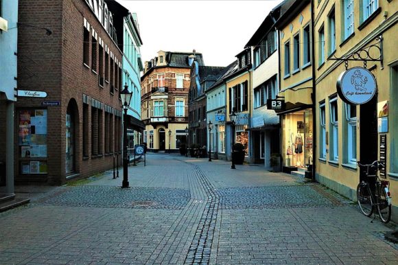 Leere Einkaufsstraßen beim Lockdown (wie hier in Kempen); Augenoptiker dürfen ihre Geschäfte weiter geöffnet lassen (Bild: Pixabay / Caniceus)