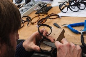 Für Tomas Maier hat er eine kleine Linie mit zeitgenössischen Aviatorbrillen mit flachen Linsen entwickelt und andere Variationen auf amerikanische Klassiker. Für Stella McCartney entwickelte das Team ein nachhaltiges Bio-Acetat. Aber man besitzt keine eigenen Fabriken, arbeitet mit frei gewählten Herstellern in Italien und Japan zusammen.