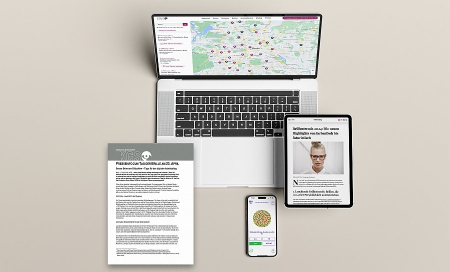 Auch im digitalen Bereich ist das KGS präsent. Die spezialisierten Webseiten www.sehen.de, www.brillenstyling.de, www.seh-check.de und www.kontaktlinseninfo.de bieten umfassende Informationen und Services zu den verschiedensten augenoptischen Themen für alle Altersgruppen. Jährlich greifen über zwei Millionen Fehlsichtige auf diese Angebote zurück.