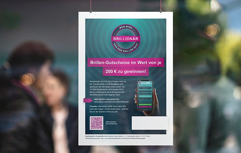 Wie verschafft man einem fast unsichtbaren Hightech-Produkt Aufmerksamkeit? Mit dem Online-Quiz „Wer wird Brillionär?“ vermittelt das Kuratorium Gutes Sehen (KGS) zum zweiten Mal Aha-Erlebnisse. Das Gewinnspiel soll ab August für vier Monate das Interesse an innovativen Sehlösungen wecken und neue Kundschaft in die Augenoptikbetriebe führen.