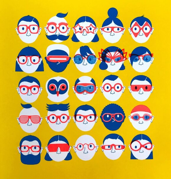 Schon das fabelhafte Buchcover leuchtet in knalligem Orange, darauf ein Mann mit Brille und Hut, auf dem eine Eule hockt. Das Neonorange und die Eule bleiben dem Leser erhalten, verschwinden, doch kommen wieder. Das Auge erfreut sich an Pinkrot, strahlendem Gelb, sattem Blau. Wimmelbilder und reduzierte Ästhetik wechseln einander ab. Die kurzen Texte sind zweifach schlau.