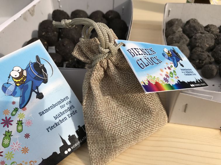 (Münster) – Koberg + Tente aus Münster hat zusammen mit seinen Mitarbeitern sogenannte „Samen-Bomben“ gefertigt. Diese sind auch als Seedbombs bekannt und enthalten wertvolle Samen für Blumen, welche den Bienen die Arterhaltung erleichtern. Im Frühjahr werden sie zusammen mit Sonnenbrillen des Brillenherstellers an die Kunden verteilt.