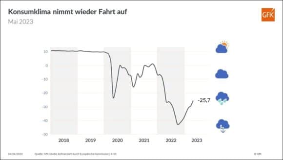 Trotz der Zuwächse ist das Niveau der Konsumneigung gegenwärtig noch niedriger als zu Zeiten der beiden Pandemie bedingten Lockdowns im Frühjahr 2020 sowie Ende 2020/Anfang 2021. Viele Haushalte seien nach wie vor verunsichert, vor allem auch deshalb, weil nun die Abrechnungen für die vergangene Heizperiode anstehen und hier mit deutlich höheren Kosten zu rechnen ist. Dagegen wirken stabile Beschäftigungs-Verhältnisse stützend auf die Konsumneigung.