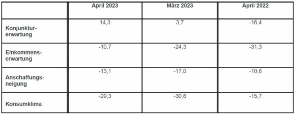 GfK Konsumklima Entwicklung Indikatoren April 2023