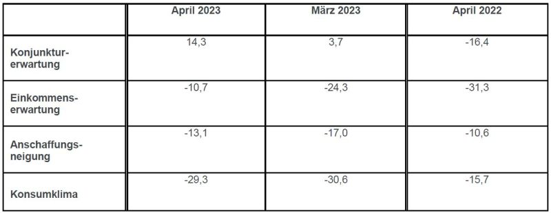 GfK Konsumklima Indikatoren April 2023