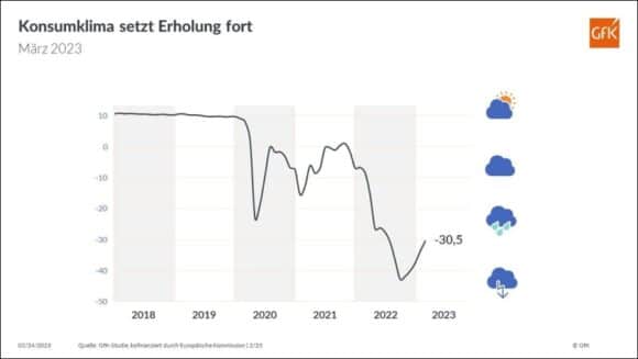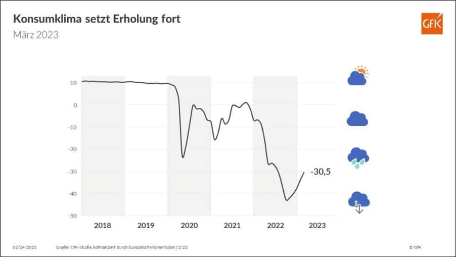 Damit setzt die Konsumstimmung ihre im Herbst 2022 begonnene Verbesserung nach dem Rekordtief weiter fort. Für das Konsumklima ist dies bereits der fünfte Anstieg in Folge.