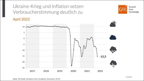 „Noch im Februar waren die Hoffnungen groß, dass sich mit den absehbaren Lockerungen der Pandemie bedingten Beschränkungen auch die Konsumstimmung deutlich erholen kann. Mit Beginn des Ukraine-Krieges hat sich dies jedoch schlagartig in Luft aufgelöst. Steigende Verunsicherung sowie die Sanktionen gegenüber Russland haben vor allem die Energiepreise explosionsartig in die Höhe schnellen lassen und drücken damit spürbar auf die allgemeine Verbraucherstimmung“, erklärt GfK-Konsumexperte Rolf Bürkl.