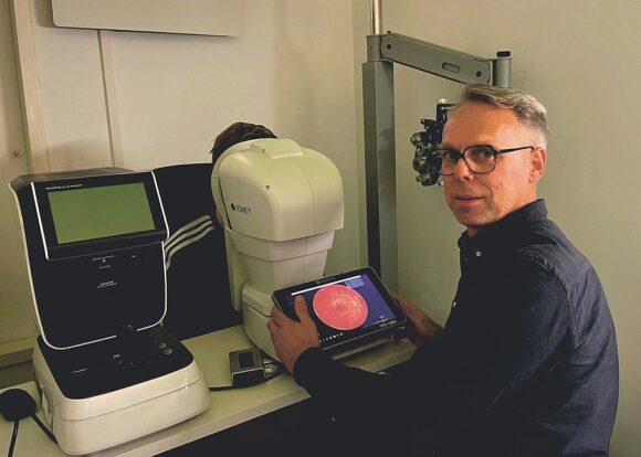 Mit der eingetragenen Marke SmartSehManagement bietet Augenoptikermeister Klaus Keller aus Schweinfurt seinen Kunden Augenscreenings in Verbindung mit KI und Backup-Augenärzten an