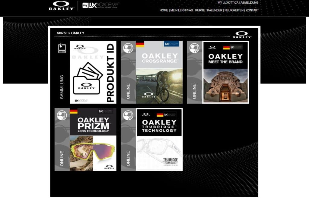 Parallel dazu und auch das kann man vom Marktführer erwarten, wurde das Thema Digitalisierung weiter entwickelt. Wir haben seit Anfang dieses Jahres eine digitale Trainingsplattform, die wir allen Kunden zur Weiterbildung und Verkaufsunterstützung anbieten. Dort kann der Händler bedarfsgerecht Kurse absolvieren, sei es zu Oakley Prizm, zu Storytelling unserer Marken, zu diversen technischen oder auch zu ganz markenspezifischen Themen.