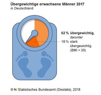 Das kann ganz unterschiedliche Gründe haben. So teilt z.B. das Statistische Bundesamt (Destatis) anlässlich des aktuellen Weltmännertags mit, dass im vergangenen Jahr 62% der erwachsenen Männer in Deutschland übergewichtig (BMI > 25)waren. Gegenüber der letztmaligen Erhebung von 2013 sei dieser Anteil unverändert geblieben. Mit einem Wert über 30 gelten Erwachsene als stark übergewichtig oder adipös. Dies traf 2017 auf 18 % der Männer zu (2013: 17 %).