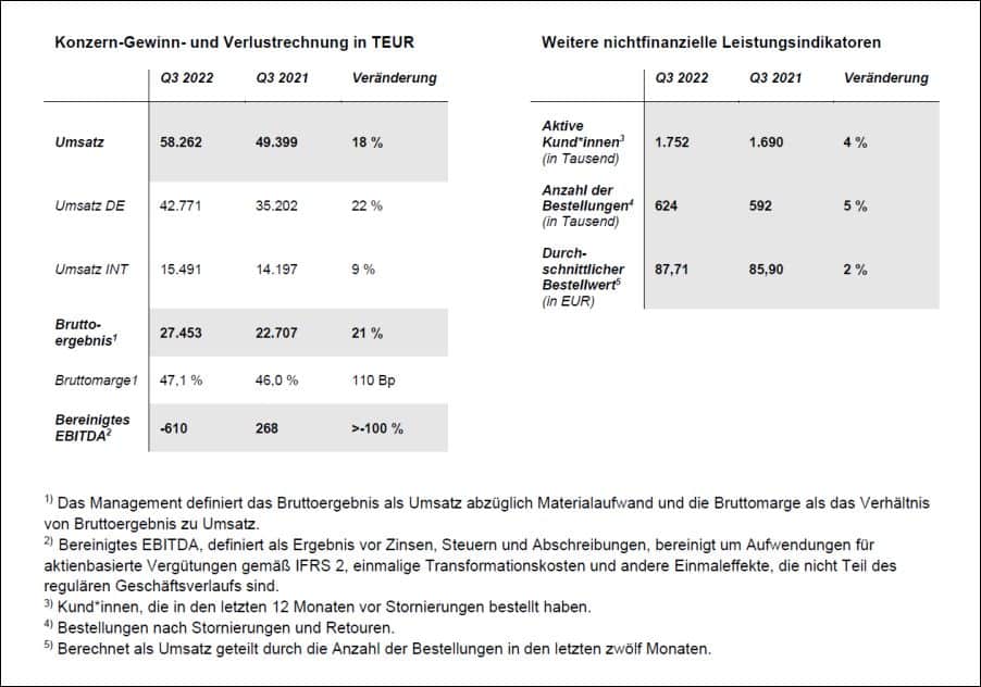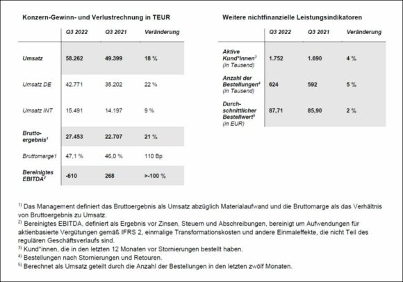 Mister Spex bestätigt seine Prognose für das Geschäftsjahr 2022. Der Vorstand erwartet ein Umsatzwachstum zwischen 7 % und 12 %, unter der Annahme, dass es im vierten Quartal 2022 keine weiteren Einschränkungen durch Covid-19 oder geopolitische Unsicherheiten gibt. Für das laufende Geschäftsjahr rechnet man mit einer bereinigten EBITDA-Marge von –6 % bis –3 %.