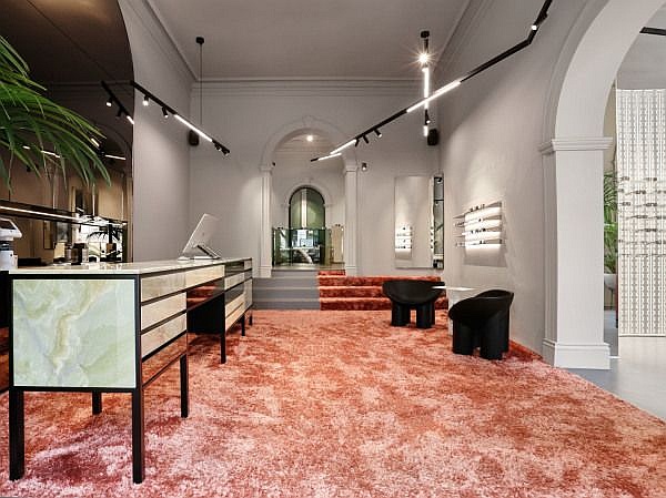 Die reduzierte Designsprache des Brillen-Labels füge der klassischen Eleganz des Interieurs einen modernen, urbanen Kontrast hinzu. Das zentrale Designelement auf der Verkaufsfläche, die signifikante, ganz in Weiß gehaltene Mykita Wall, dient als Präsentationsfläche der Brillenkollektionen.